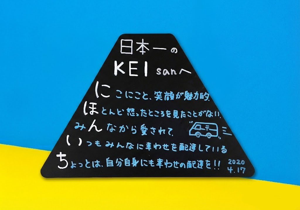 富士山の形をしたボードに、主役への想いを言葉にして贈るお祝い。名前やテーマに合わせた言葉遊びも楽しめます。写真に残り、思い出として持ち帰れるのも魅力です。