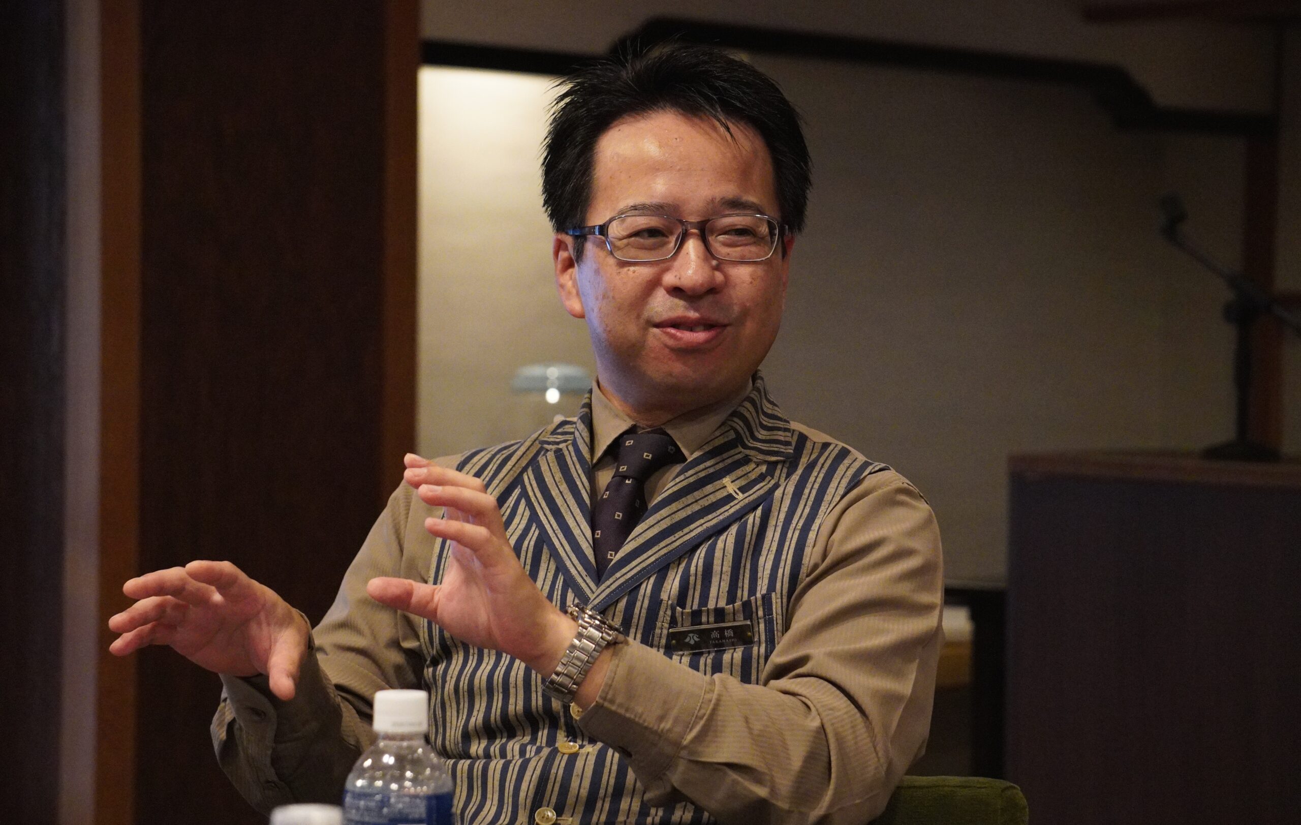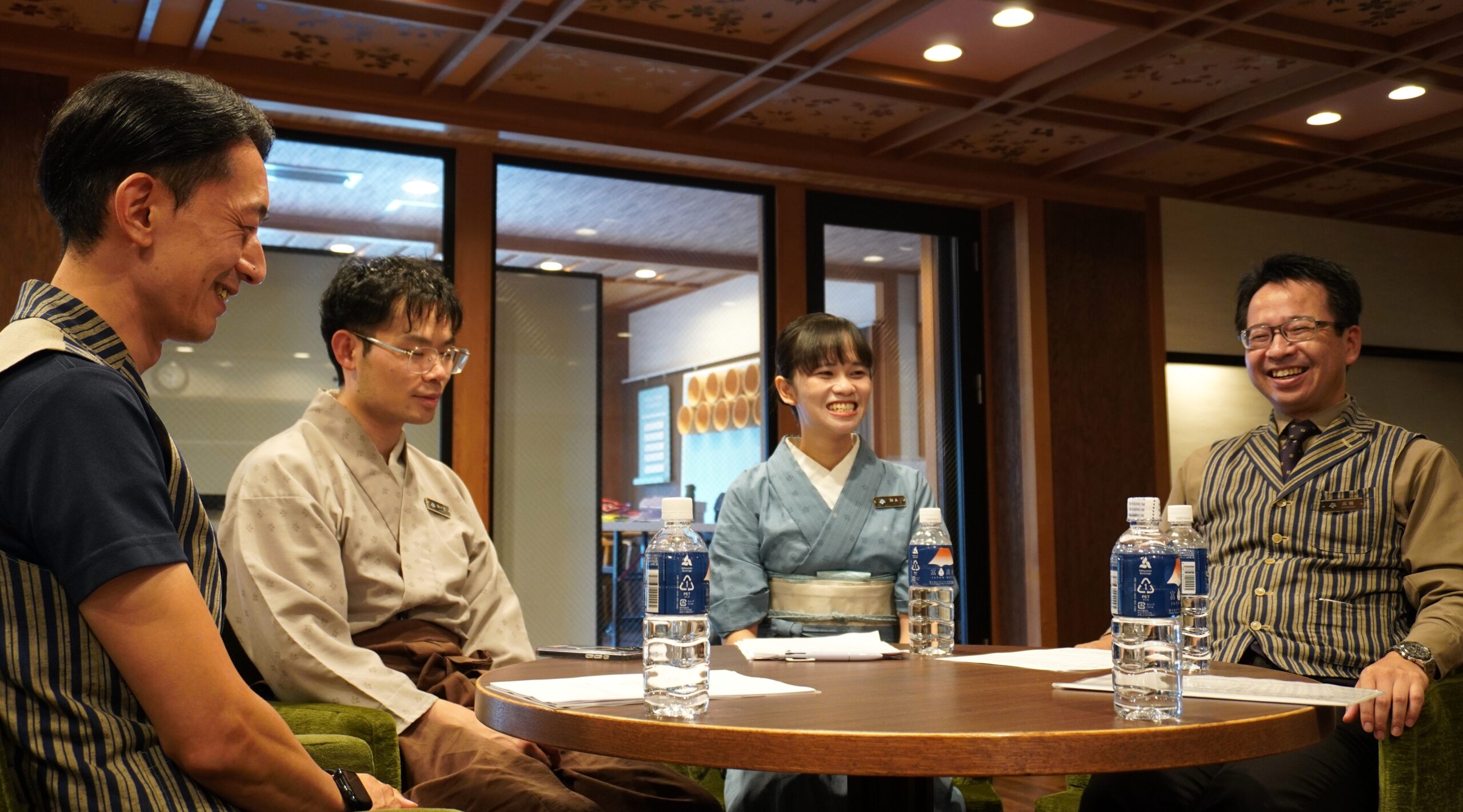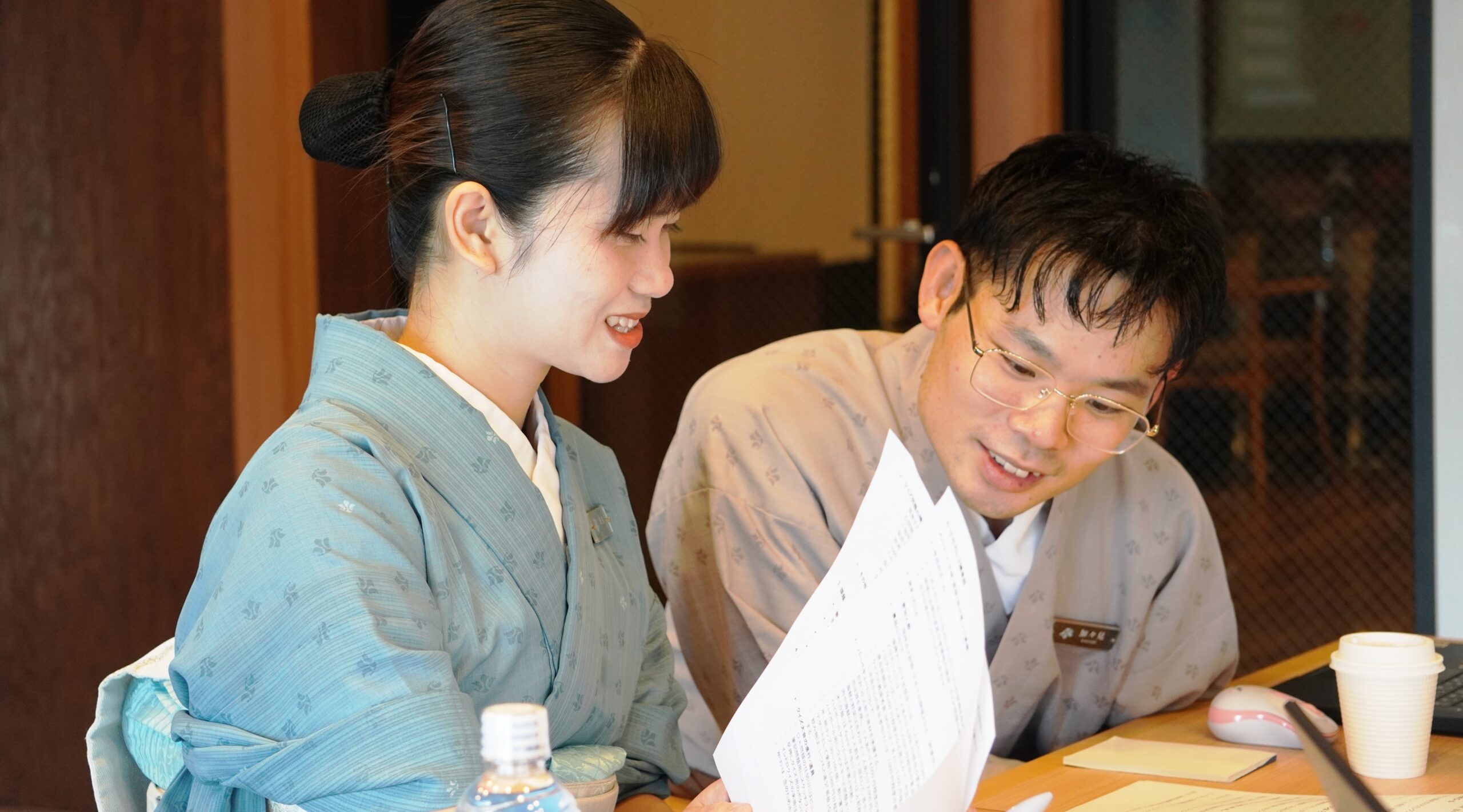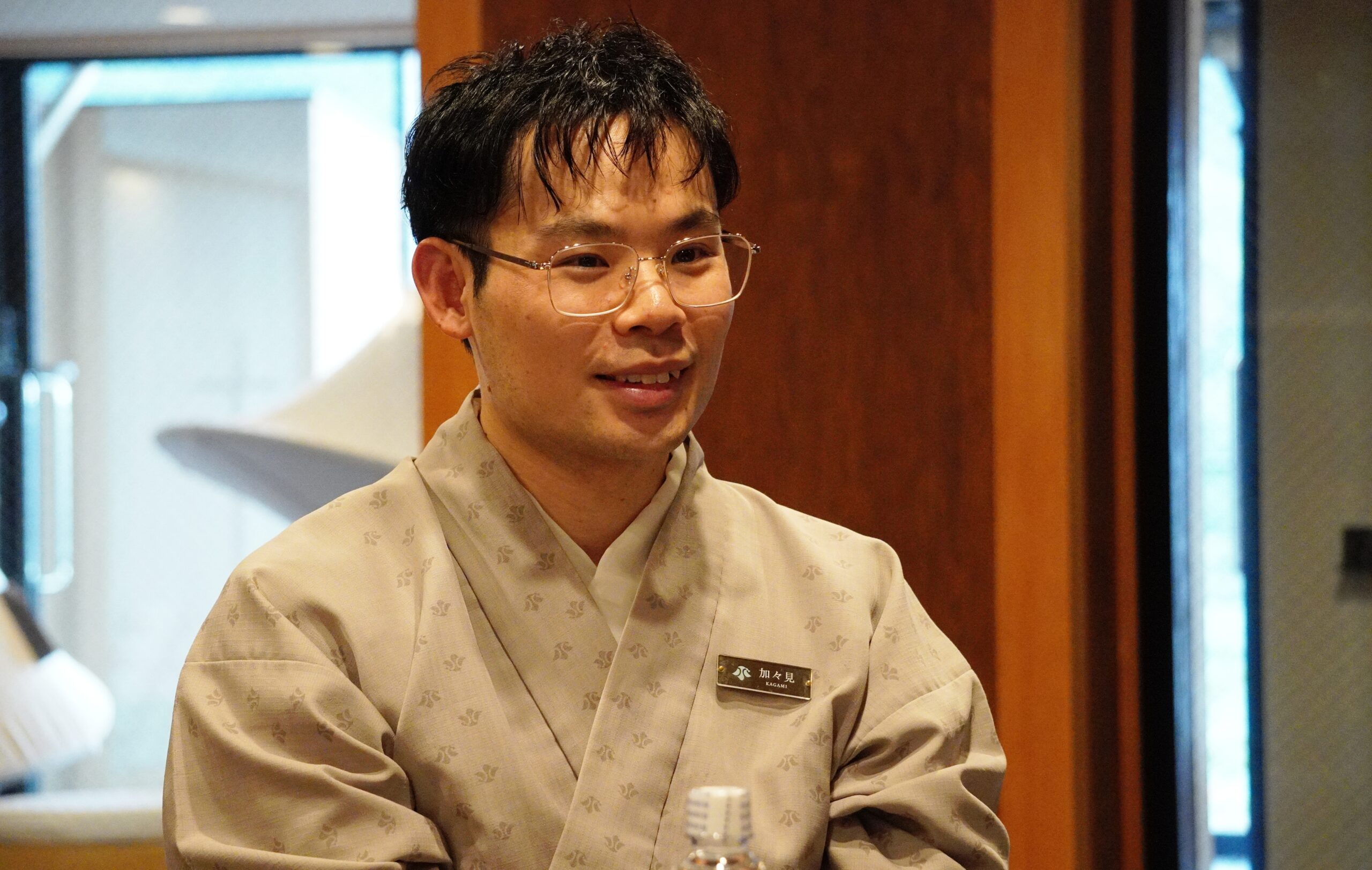 入社以来、フロント、ラウンジ、経理、客室係など幅広い業務を経験してきたうぶやの“縁の下の力持ち”。現在はフロント主任としてチームを支えつつ、社内のさまざまなプロジェクトに関わるマルチプレイヤー。穏やかな語り口と柔軟な調整力で、部署を超えた橋渡し役を務める。仕事のモットーは「穴が開いてても器は大きく!」